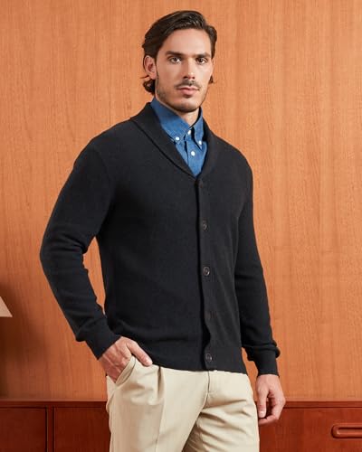 Kallspin Men's Pure Cotton Cardigan Sweater Button Down Shawl Collar Lightweight Knitwear iconic Casual