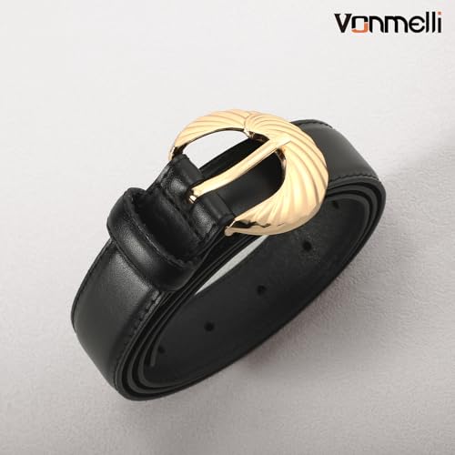 VONMELLI Womens Belts for Jeans 1.1" Width Ladies Belts for Dresses Gold Buckle Belt 1