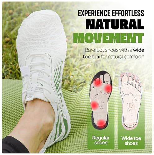 More information about HF Breathable Wide Toe Barefoot Shoes, Men Women, Non - Slip, Minimalist Athletic Footwear, Walking, Running, Hiking and Daily Wear White/Green