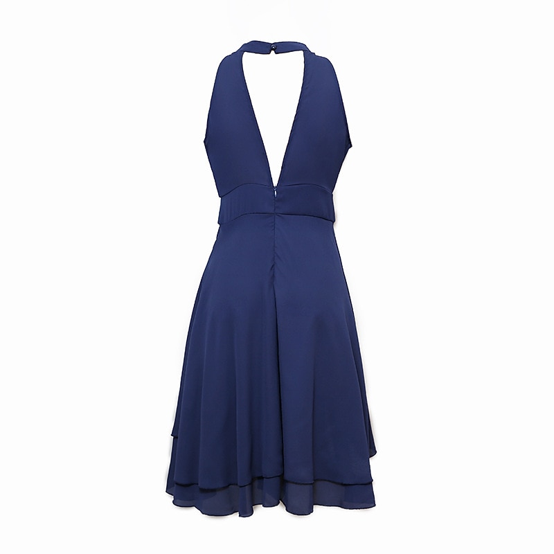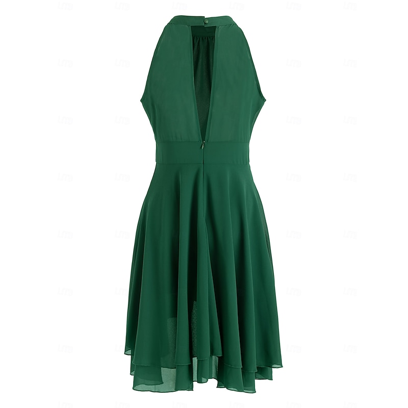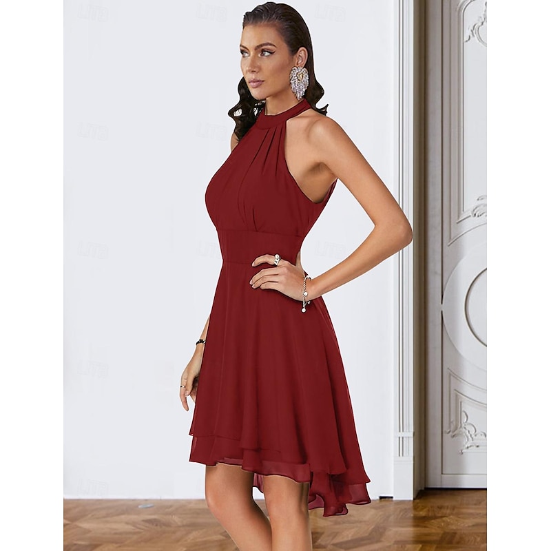 More information about A-Line Cocktail Dresses Party Dress Wedding Guest Engagement Knee Length Sleeveless Halter Neck Chiffon V Back with Sleek Tiered dress to impress