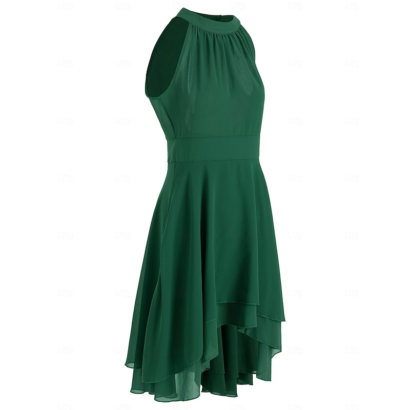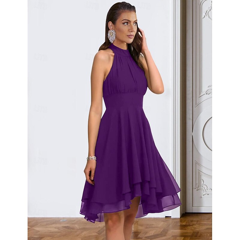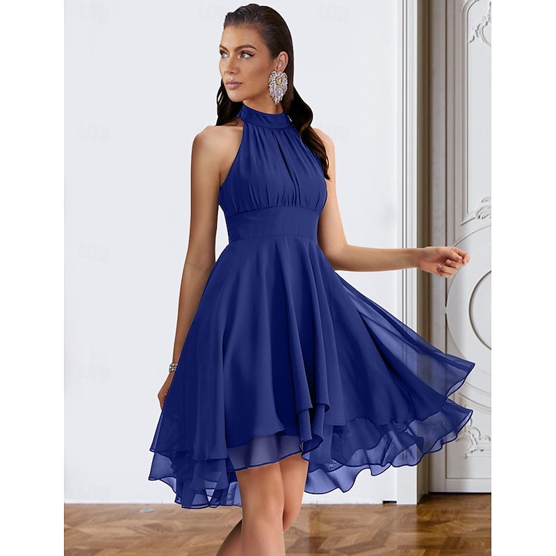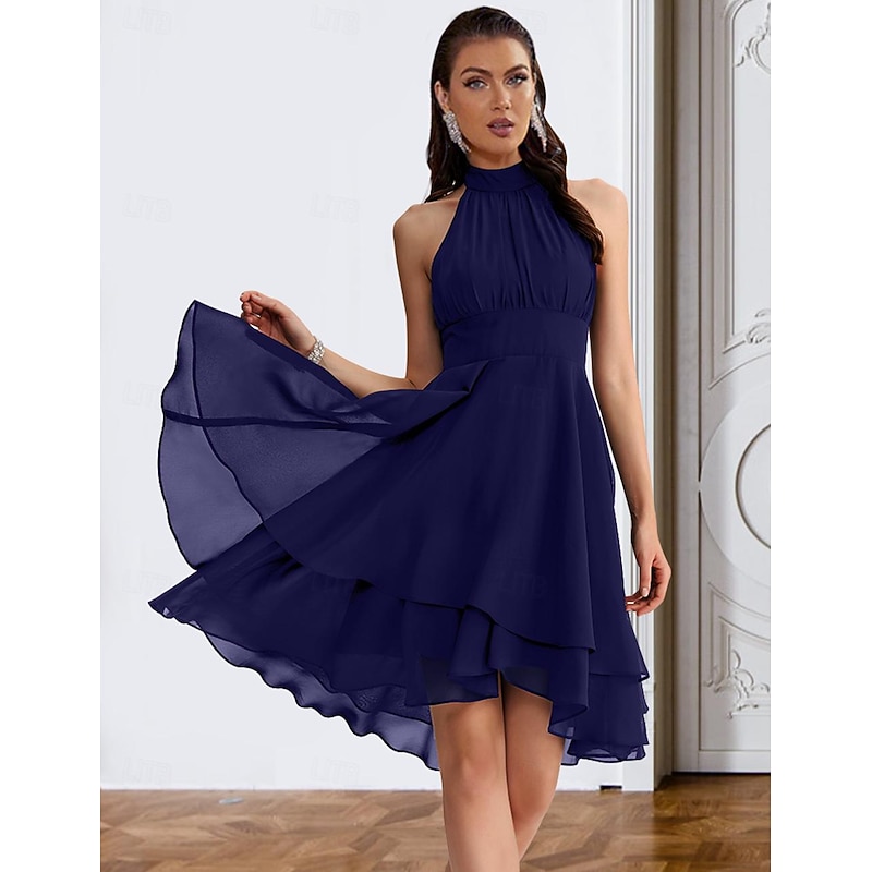 A-Line Cocktail Dresses Party Dress Wedding Guest Engagement Knee Length Sleeveless Halter Neck Chiffon V Back with Sleek Tiered  dress to impress 5
