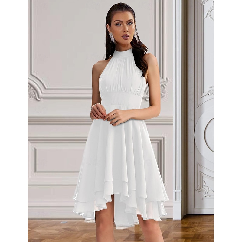 HOT ! A-Line Cocktail Dresses Party Dress Wedding Guest Engagement Knee Length Sleeveless Halter Neck Chiffon V Back with Sleek Tiered dress to impress
