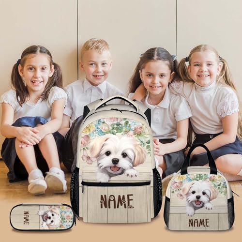 Kids School Backpack, Cute Maltese Schoolbag for Boys Girls, 17 Inch 3 Pcs Set Kids Utility Backpacks for Teen, Dog Bookbag for Travel School Picnic 3