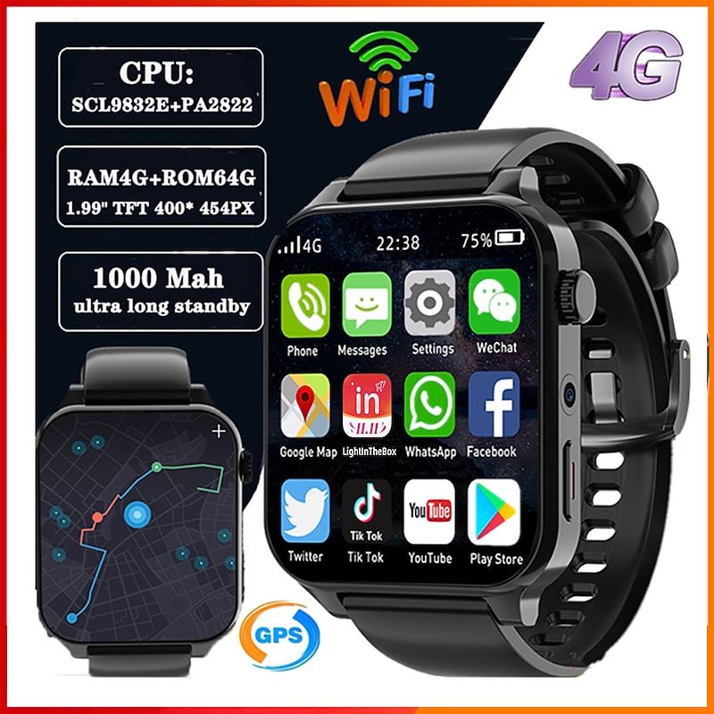 More information about 696 TK01 Smart Watch 1.99 inch 4G LTE Cellular Smartwatch Phone Bluetooth 4G Pedometer Call Reminder Sleep Tracker Compatible with Android iOS Men GPS Hands-Free Calls with Camera IP 67 31mm Watch