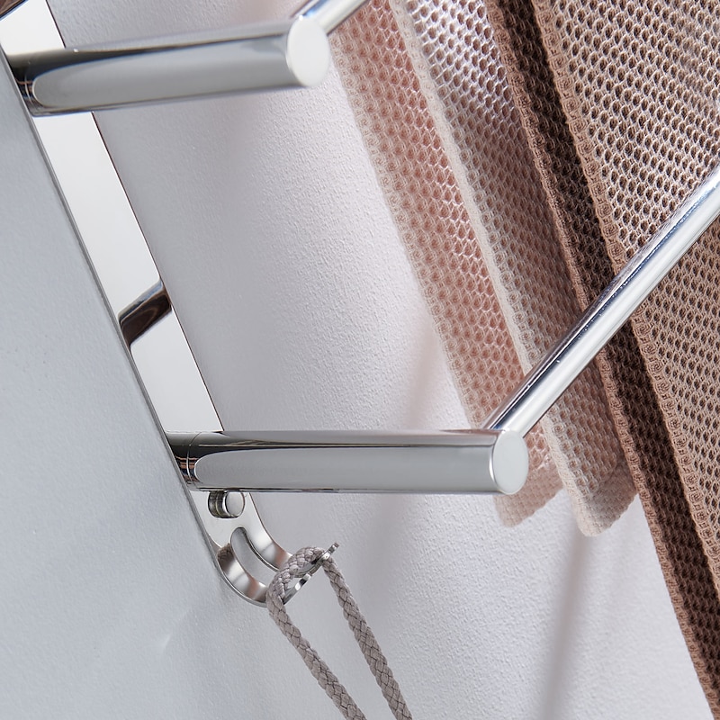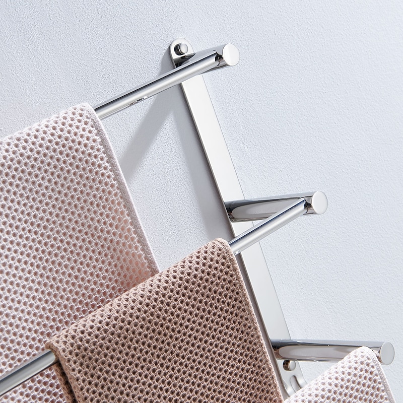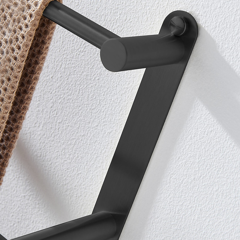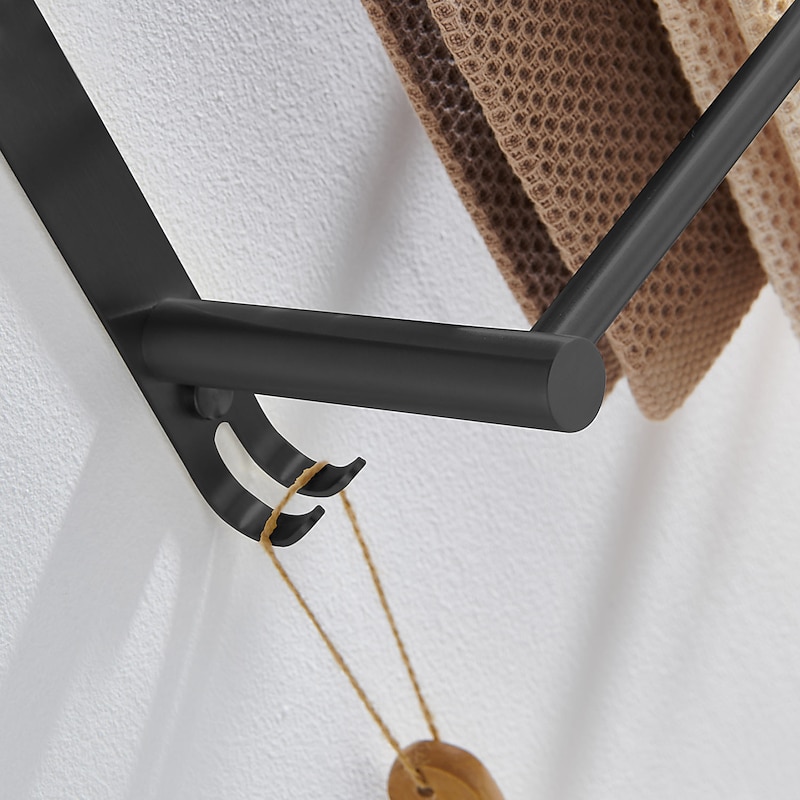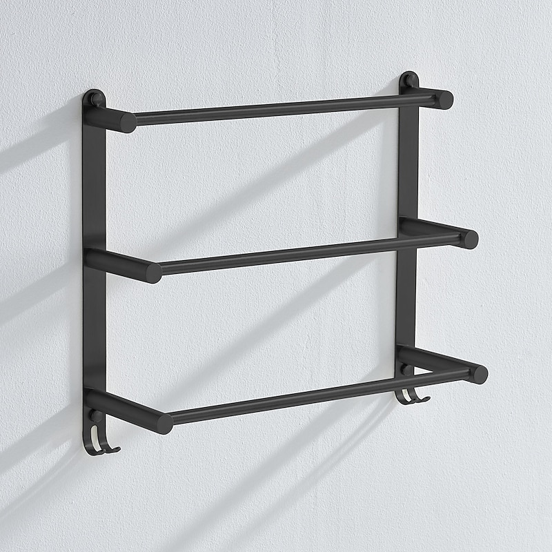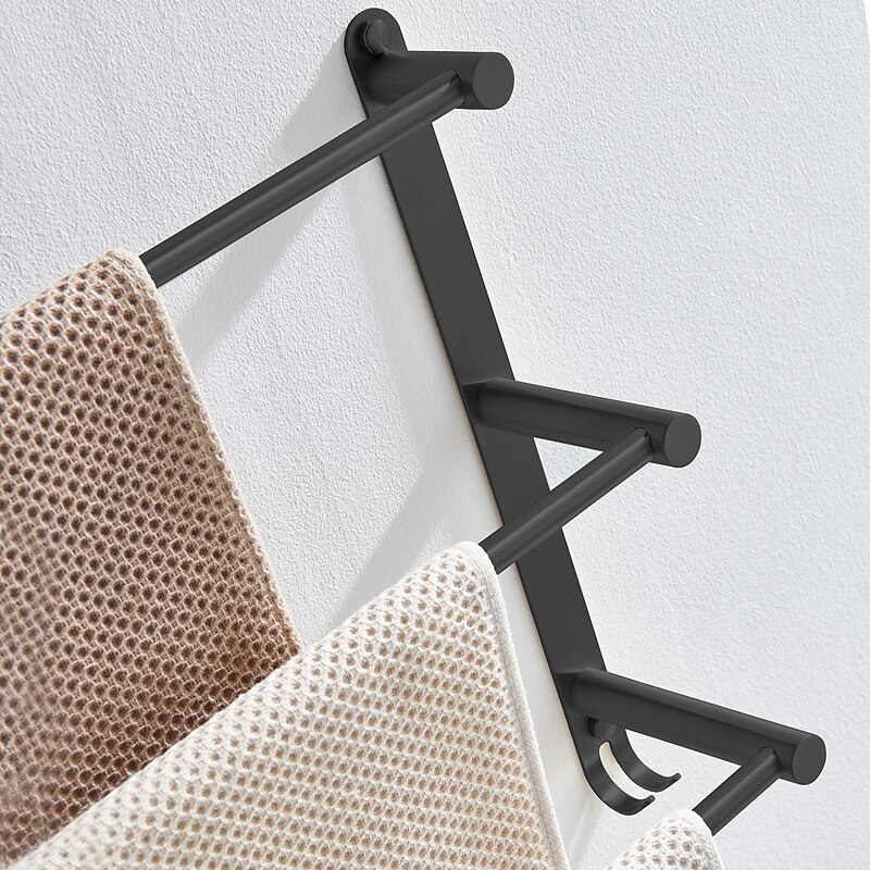 Highlights - High-quality metal construction - Processed with professional technology - Made of 304 stainless steel for formal material testing - Strong corrosion resistance, no rust, durable for over 20 years - Available in two colors: Noble Black and Silvery - Three bar design with hook for hanging bathroom gadgets - Eco-friendly, promoting health and safety for the family - Strong bearing capacity - Classic wall mount style for easy installation