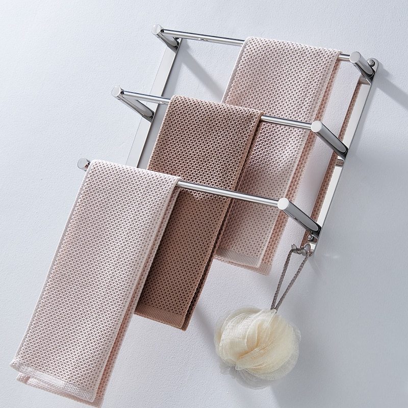 Wall Mounted Towel Rack with Hooks,Stainless Steel 3-TierTowel Bar Storage Shelf for Bathroom 30cm~70cm Towel Holder Towel Rail Towel Hanger 19