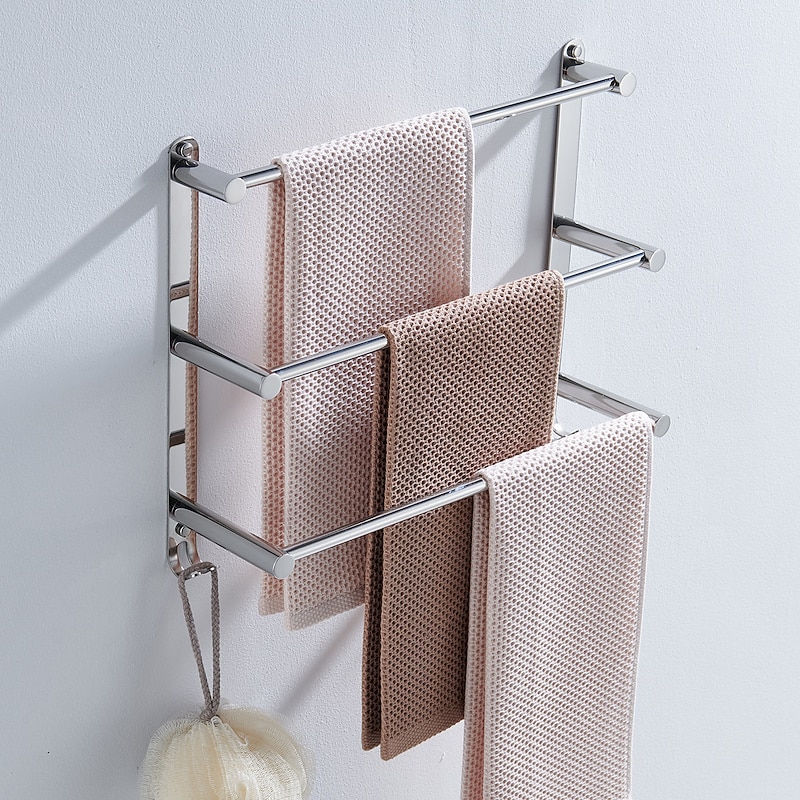 Wall Mounted Towel Rack with Hooks,Stainless Steel 3-TierTowel Bar Storage Shelf for Bathroom 30cm~70cm Towel Holder Towel Rail Towel Hanger 1