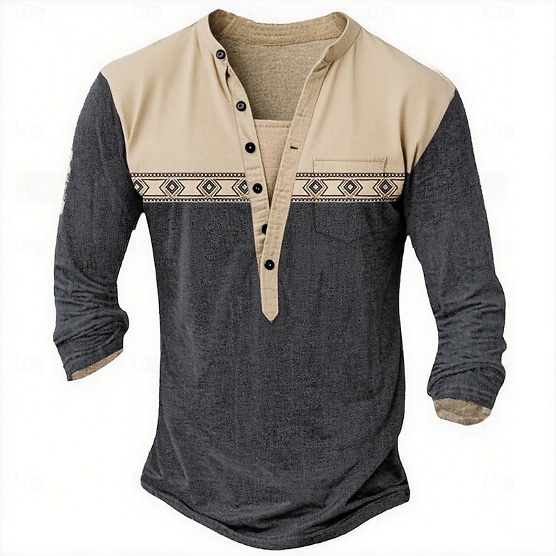 $21.99 - Men's Geometric Ethnic Henley Shirt Tee Long Sleeve Ethnic Casual Summer Spring Fall Lake blue Dark Gray Black Green Light Blue Henley Henley T-Shirt 2025. Shop for cheap Ethnic Style online? Buy at lightinthebox.com on sale today!