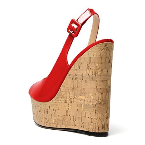 YODEKS Women's Platform Sandals Wedge Heel Peep Toe High Heeled Pumps Platform Wooden Heel Summer Wedge Heels Shoes 5