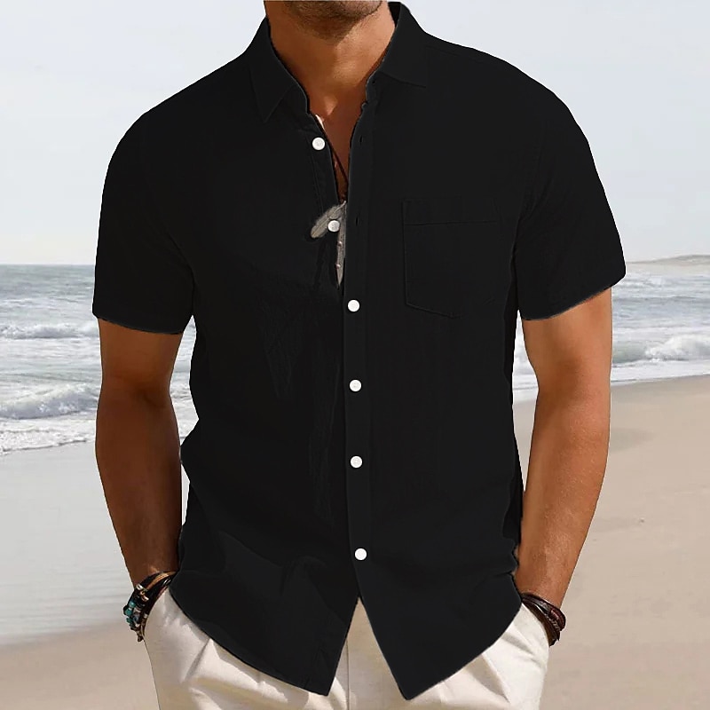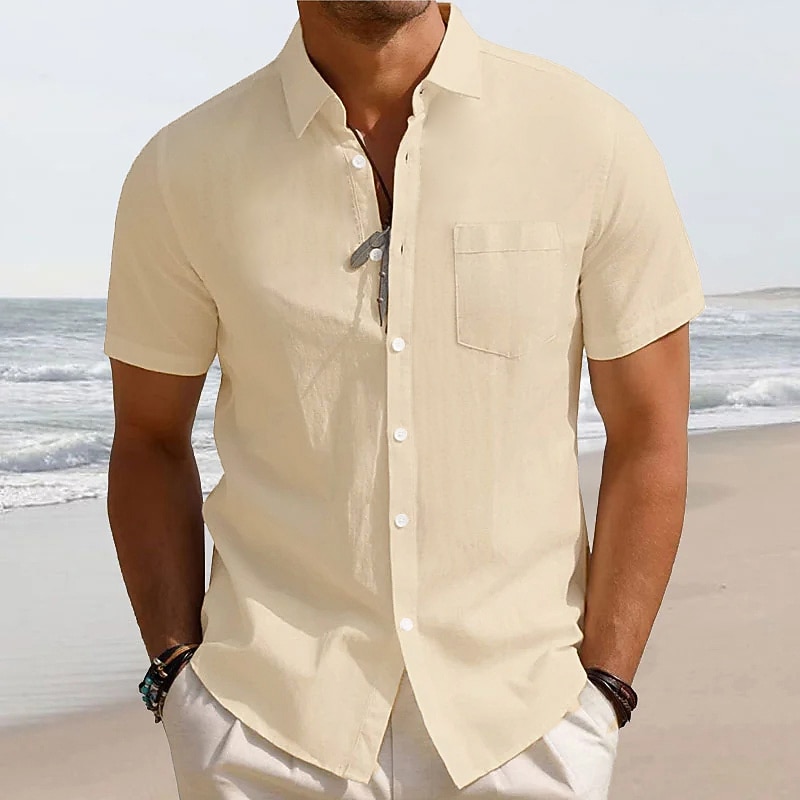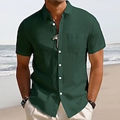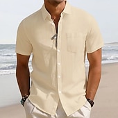 HOT ! Men's Linen Shirt White Cotton Shirt Summer Shirt Beach Shirt Cotton Linen Shirt Plain Vacation Hawaiian Black White Green Khaki Short Sleeve Lapel Spring & Summer Clothing Apparel Basic