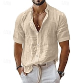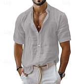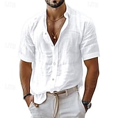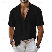 More information about Men's Shirt Linen Shirt Casual Shirt Button Up Shirt Cotton Shirt Plain Vacation Street Black White Pink Blue Short Sleeve Turndown Summer Clothing Apparel