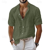 HOT ! Men's Shirt Linen Shirt Casual Shirt Button Up Shirt Cotton Shirt Plain Vacation Street Black White Pink Blue Short Sleeve Turndown Summer Clothing Apparel