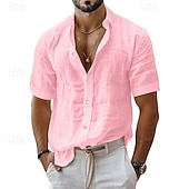 Men's Shirt Linen Shirt Casual Shirt Button Up Shirt Cotton Shirt Plain Vacation Street Black White Pink Blue Short Sleeve Turndown Summer Clothing Apparel 13