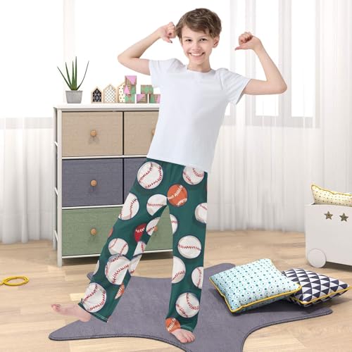 ZZXXB Baseballs Boys Long Pants Soft Trousers Elastic Waist Kids Lounge Bottoms with Pockets S-XL 1