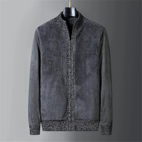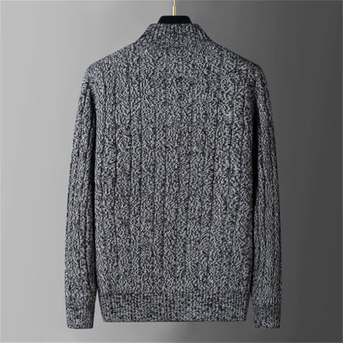 Men's Winter Fleece Thicken Warm Zipper Sweater Cardigan Solid Casual Turn-Down Collar Long Sleeve Knitted Cardigan 4