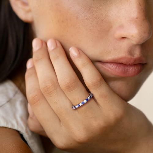 Full Eternity Band 2.4mm Wide Sterling Silver or Gold Color Stackable Birthstone and CZ Anniversary Bands Wedding Ring for Men Women, Comfort fit and Hypoallergenic 4