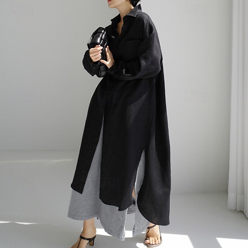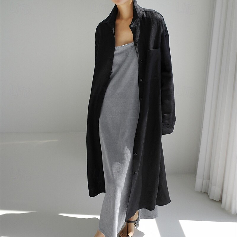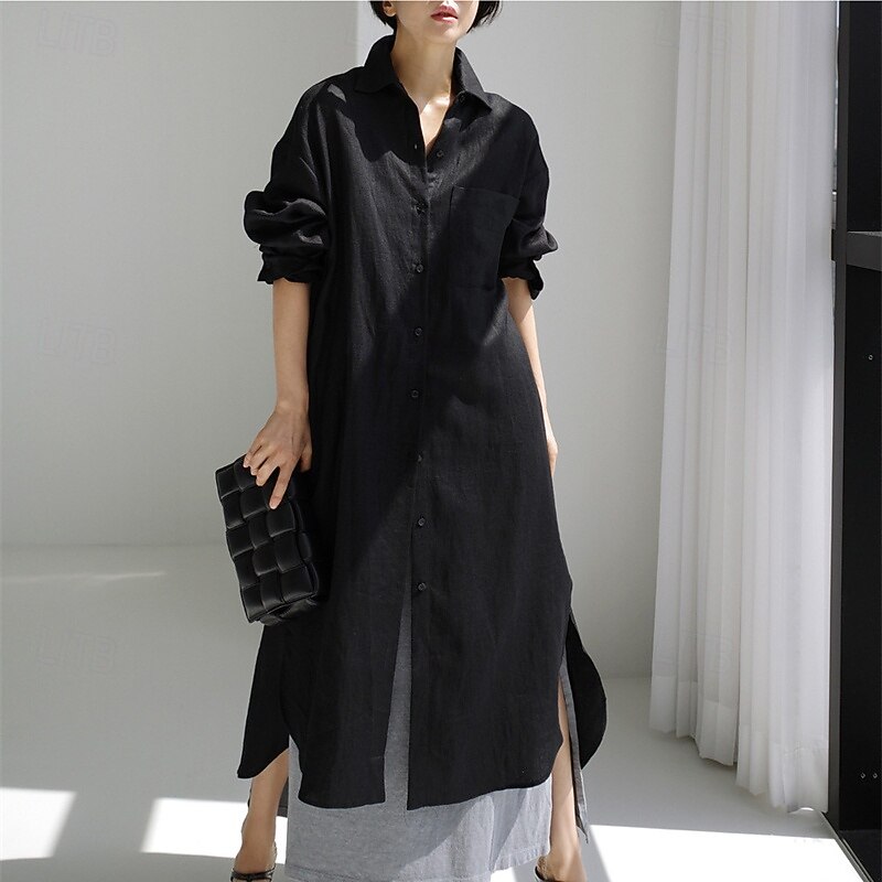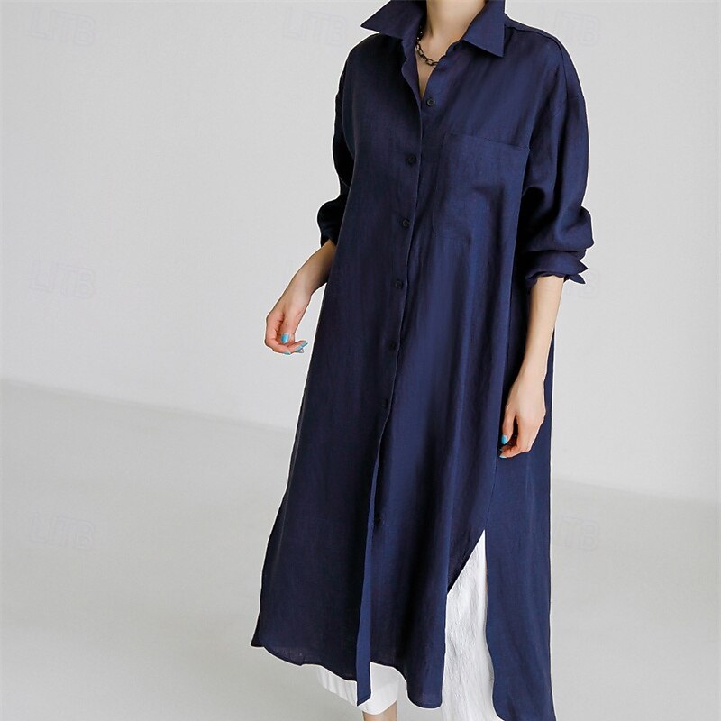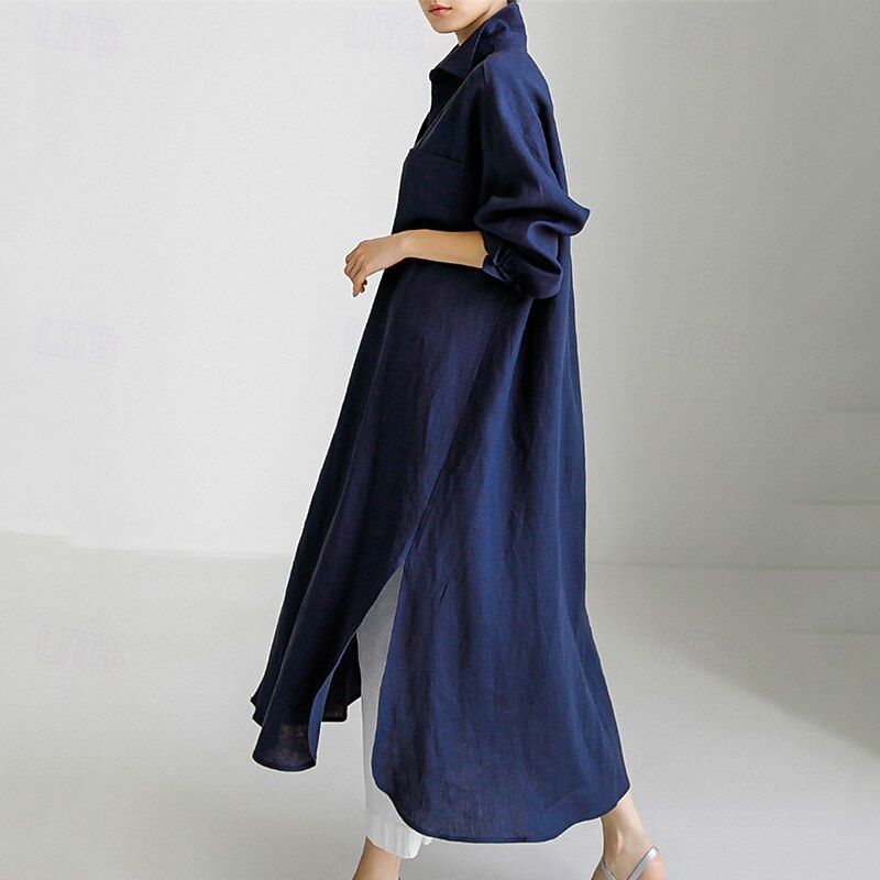 More information about Women's Long Dress Maxi Dress Linen-Inspired Dresses Shirt Dress Casual Dress Cotton Linen Dress Stylish Casual Vacation Daily Date Regular Fit Plain Long Sleeve Lapel Black Navy Blue Apricot Summer