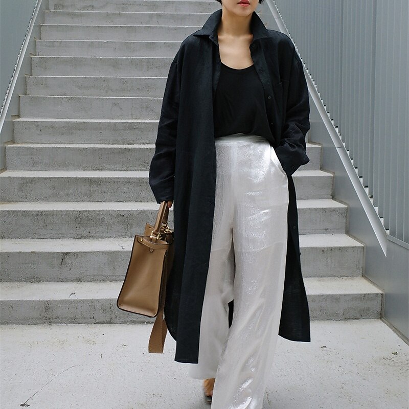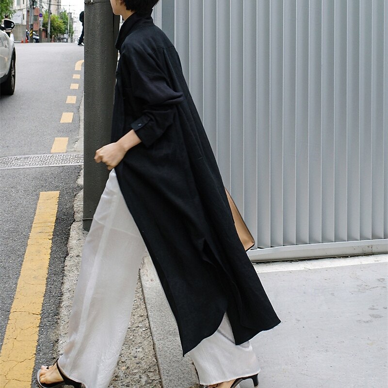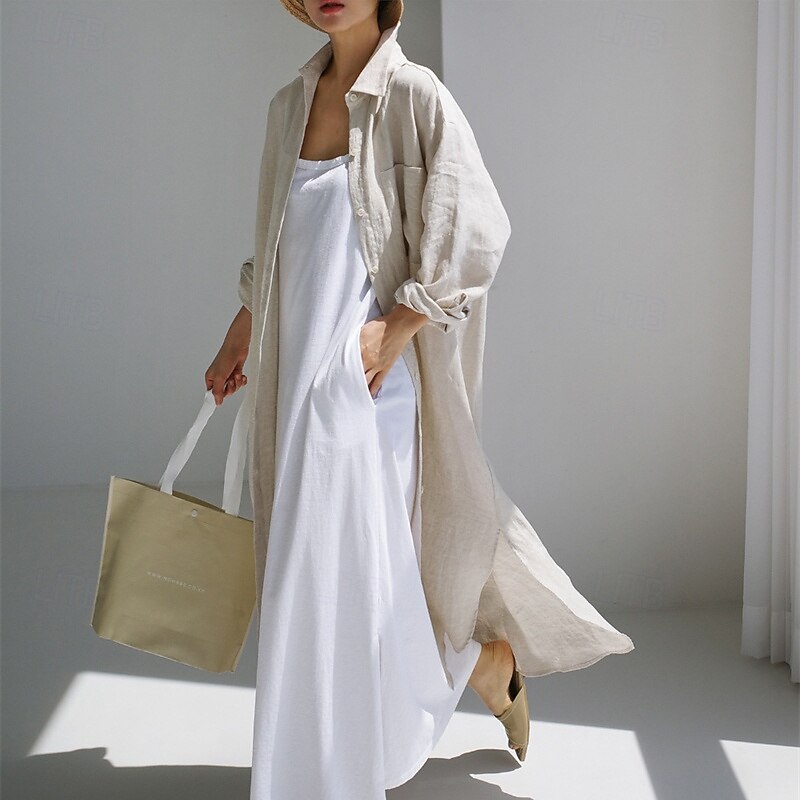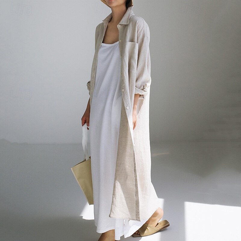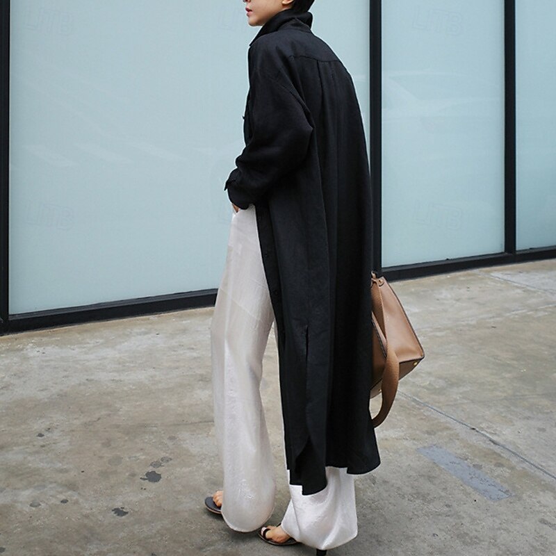 More information about Women's Long Dress Maxi Dress Linen-Inspired Dresses Shirt Dress Casual Dress Cotton Linen Dress Stylish Casual Vacation Daily Date Regular Fit Plain Long Sleeve Lapel Black Navy Blue Apricot Summer