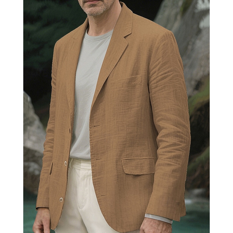 Men's Blazer Business Cocktail Party Wedding Party Fashion Casual Spring Fall Polyester Plain Pocket Buttons Comfortable Single Breasted Blazer Light Green Navy Blue Brown khaki 11