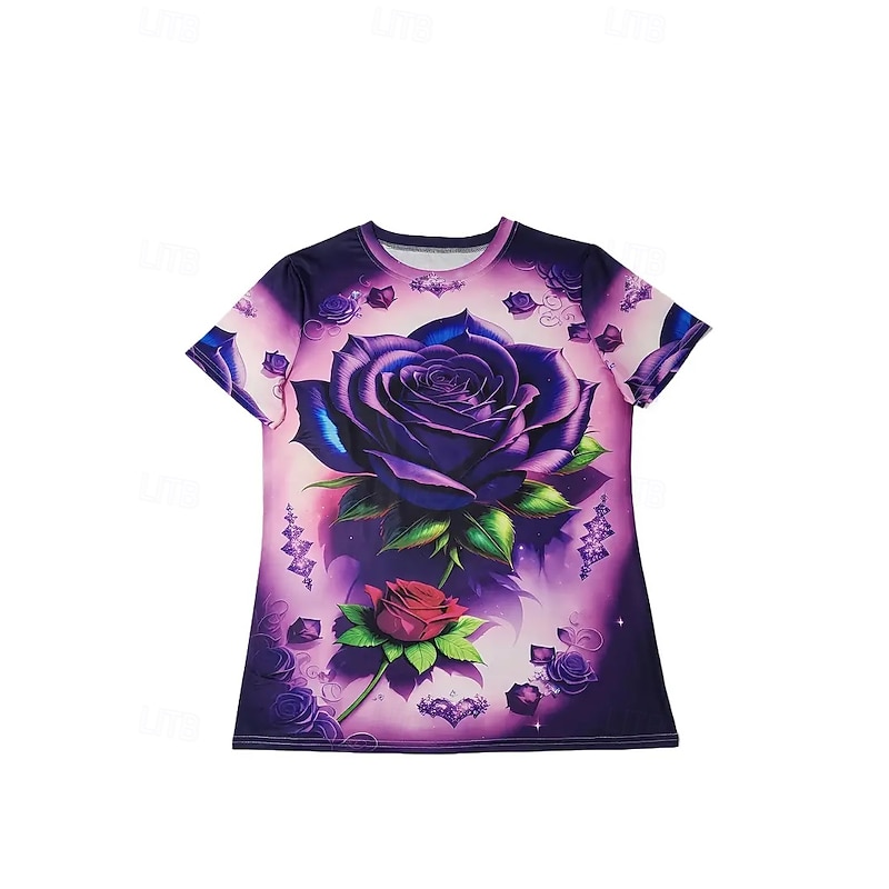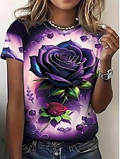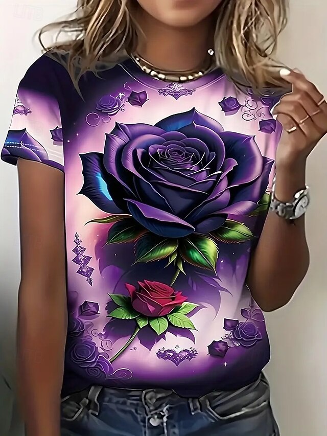 Highlights - Perfect for all seasons: Spring, Summer, and Fall - Made with high-quality polyester fabric - Features trendy short sleeves - Specifically designed for women - Classic and casual style - Ideal for daily wear - Beautiful rose pattern with print design - Comfortable crew neck neckline