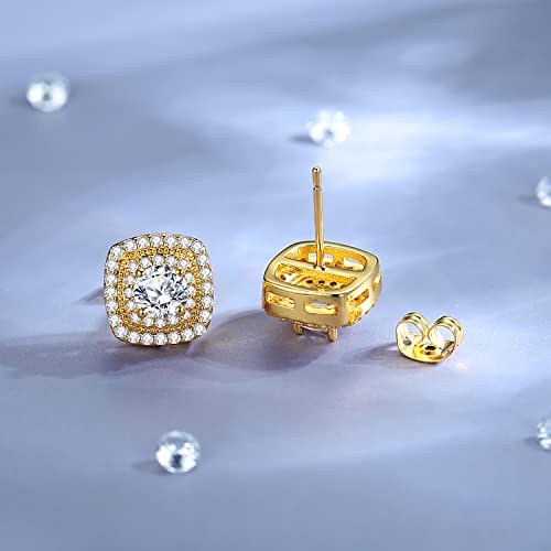 18k Gold Nugget Earrings for Men Cubic Zirconia Square Earrings for Men Women Hypoallergenic Jewelry 6