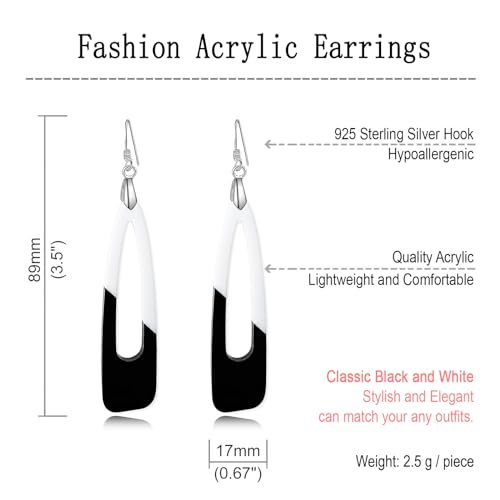 • Black White Acrylic Earrings: You will receive 1 pair of fashion acrylic earrings. Made of acrylic with 925 sterling silver hook. Stylish and Elegant, can match your any outfits.