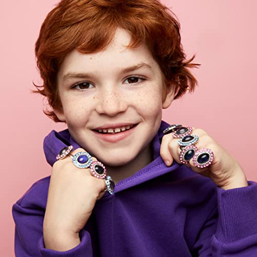 • COLOR CHANGING RINGS - Included in the set are 2 color changing rings, one surrounded by a halo of pink gems and the other with blue. Each set comes with a booklet to help determine your mood!
