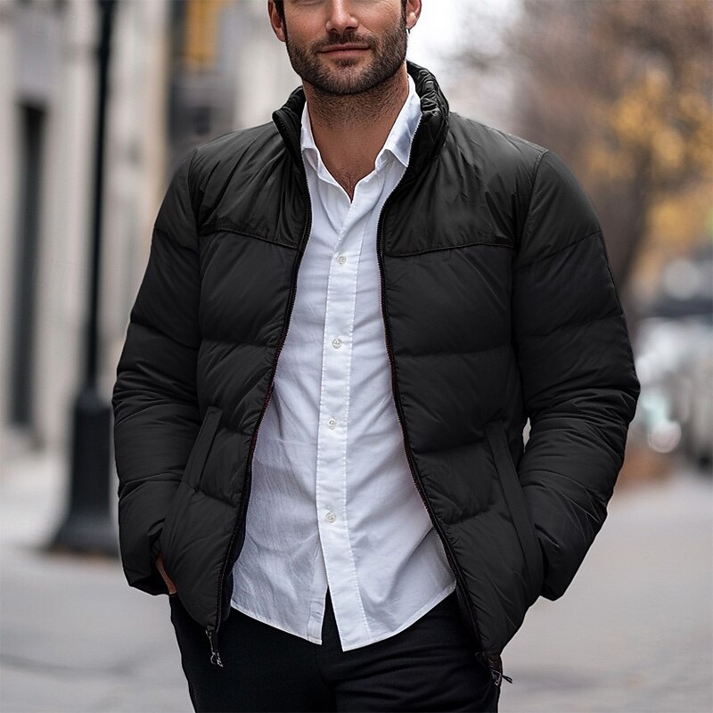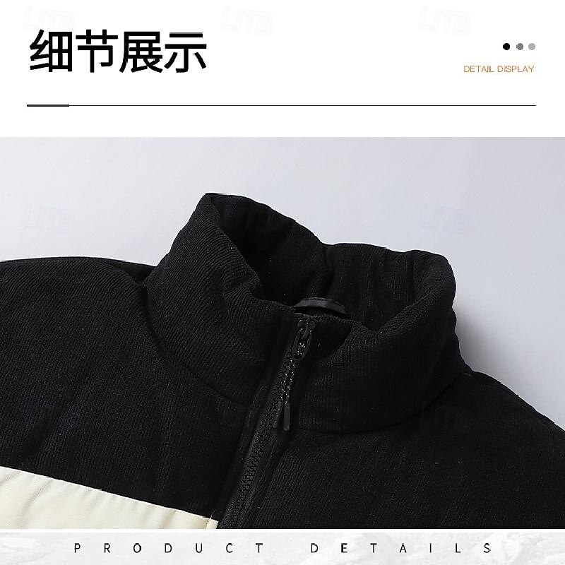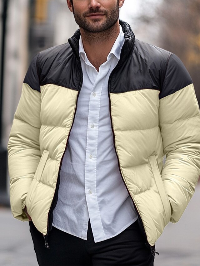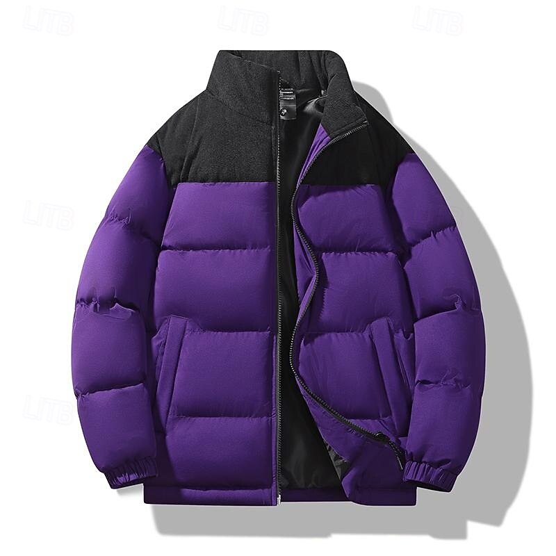 More information about Men's Puffer Jacket Padded Pocket Color Block Party Christmas Outdoor Regular Neutral Fashion Daily Winter Solid Color Black White Purple Green Puffer Jacket