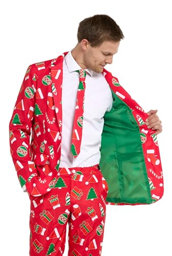 • PERFECT FOR XMAS: Stylish, affordable Christmas suit. A perfect party costume to wear at Christmas office parties, a family Christmas diner party, theme parties, or any festive events where you want to stand out.