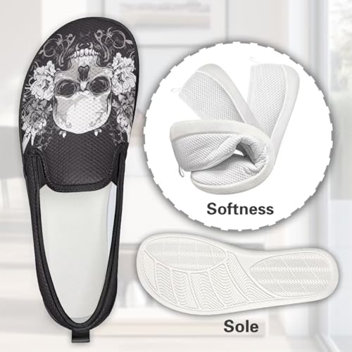 Howilath Gothic Skull Print Flat Mesh Shoes Women Slip on Loafers Casual Breathable Shoes with EVA Sole 5