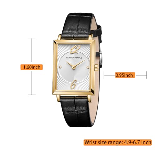 More information about GOLDEN MAPLE Elegant Watches for Women, Swiss Quartz Movement Watch with Two Diamond Markers, Gold Rectangular Stainless Steel Case, Mesh or Leather Band