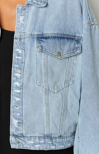 Women Distressed Light Wash Oversized Denim Jacket 4