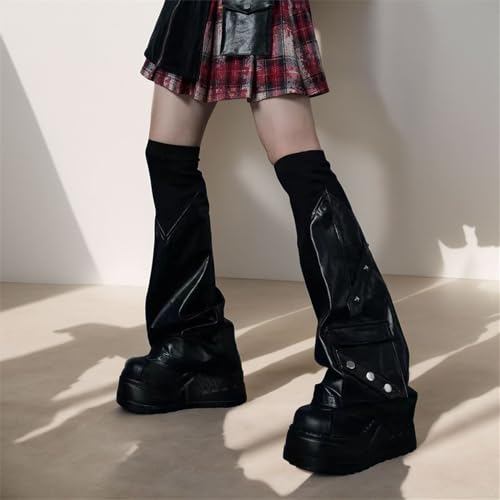 • Punk Fashion: These goth leg warmers feature faux leather panels and pockets for an authentic punk aesthetic. The flared design creates a bold y2k goth silhouette that stands out in any crowd