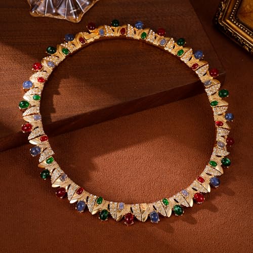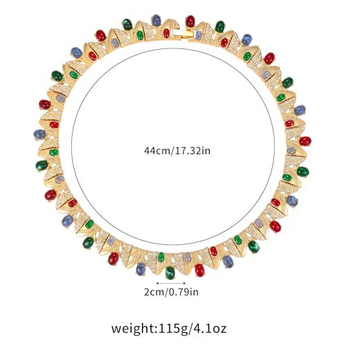 Luxurious Multi-color Gemstones Choker Necklace 18K Gold Plating Chunky statement necklace Palace Style Party Prom Necklace Choker Jewelry for Women 4