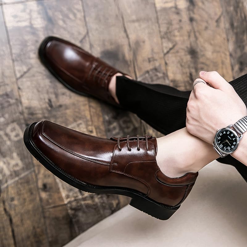 • Stylish:This men dress shoes crafted from PU leather, these men's formal shoes have a sleek square toe for a timeless look.