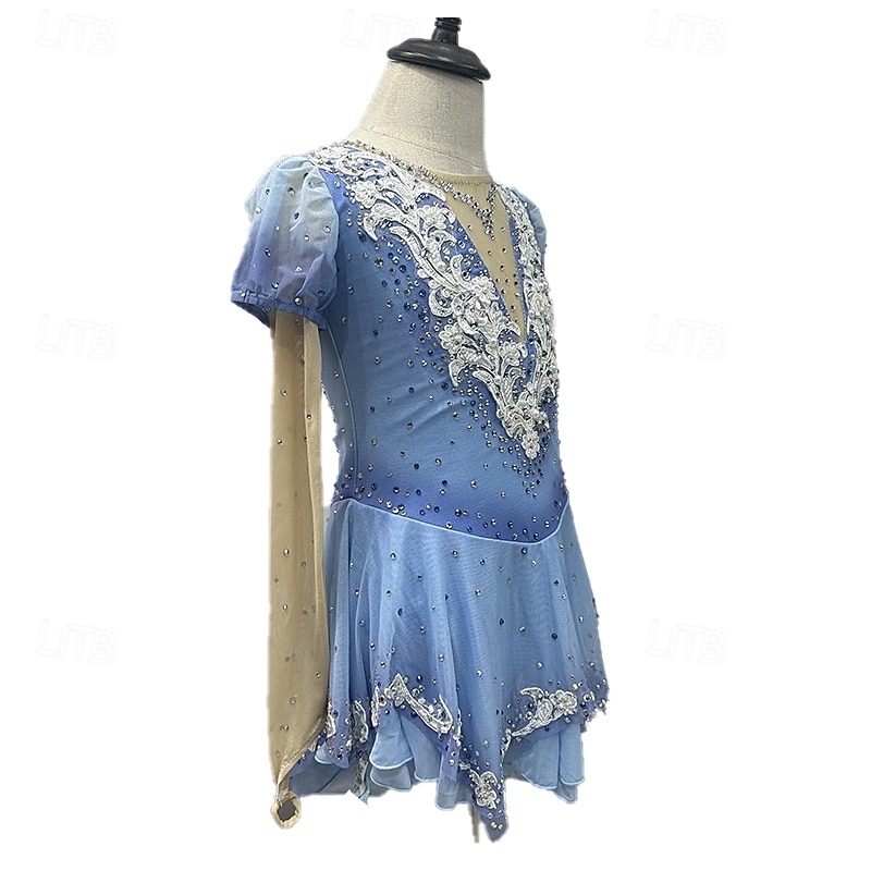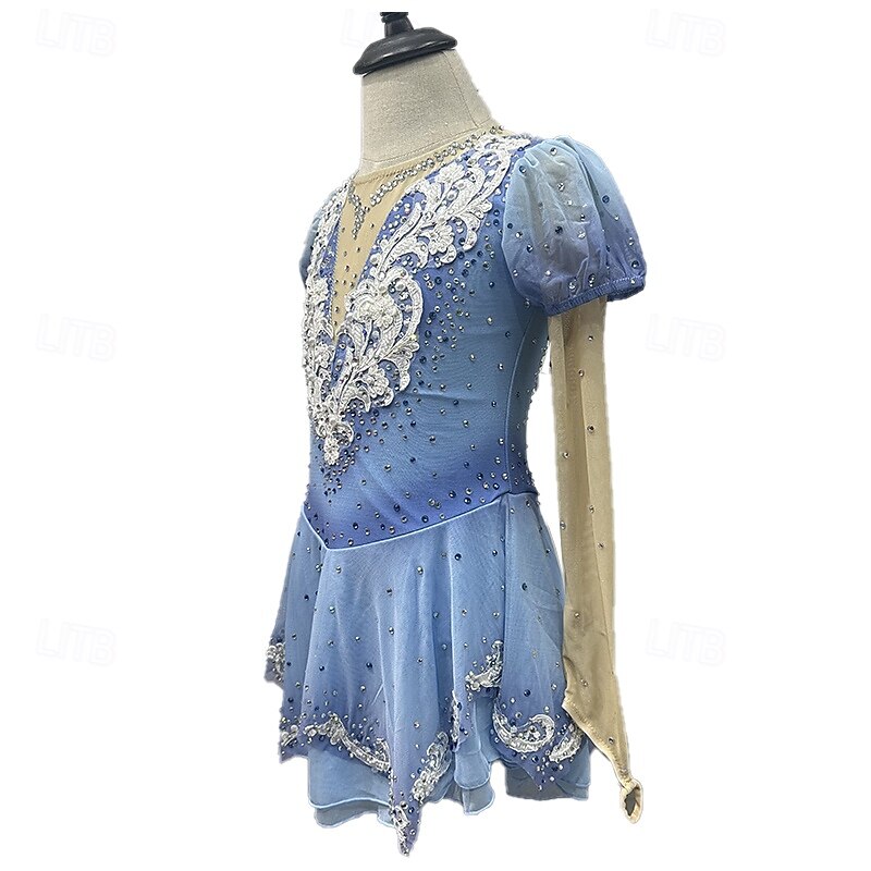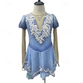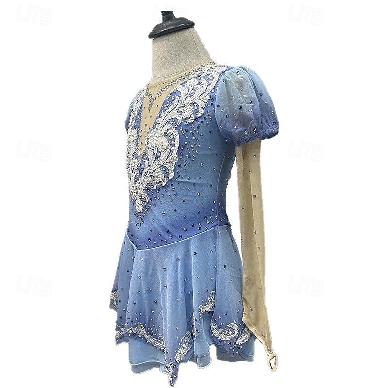 More information about Figure Skating Dress Women's Girls' Ice Skating Dress Blue+Light Blue Patchwork Thumbhole Mesh Spandex Stretchy Training Practice Professional Skating Wear Thermal Warm Crystal / Rhinestone Long