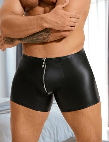 More information about comeondear Men's Faux Leather Boxer Shorts Zipper Bulge Pouch Briefs Black Plus Size Sexy Underwear Panties