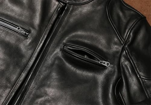 Men's Leather Jacket, Stand Collar, 1.4mm Wax Dyed Cowhide, Biker Suit 5