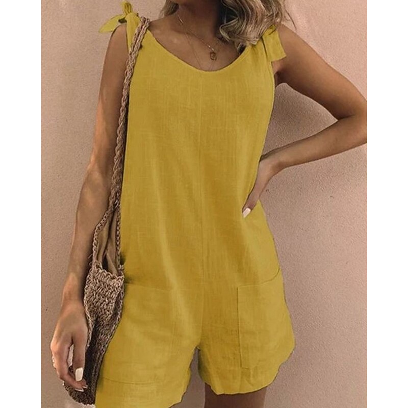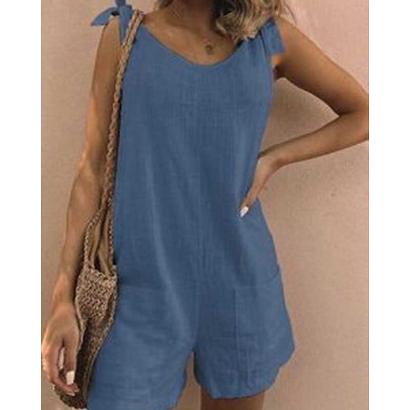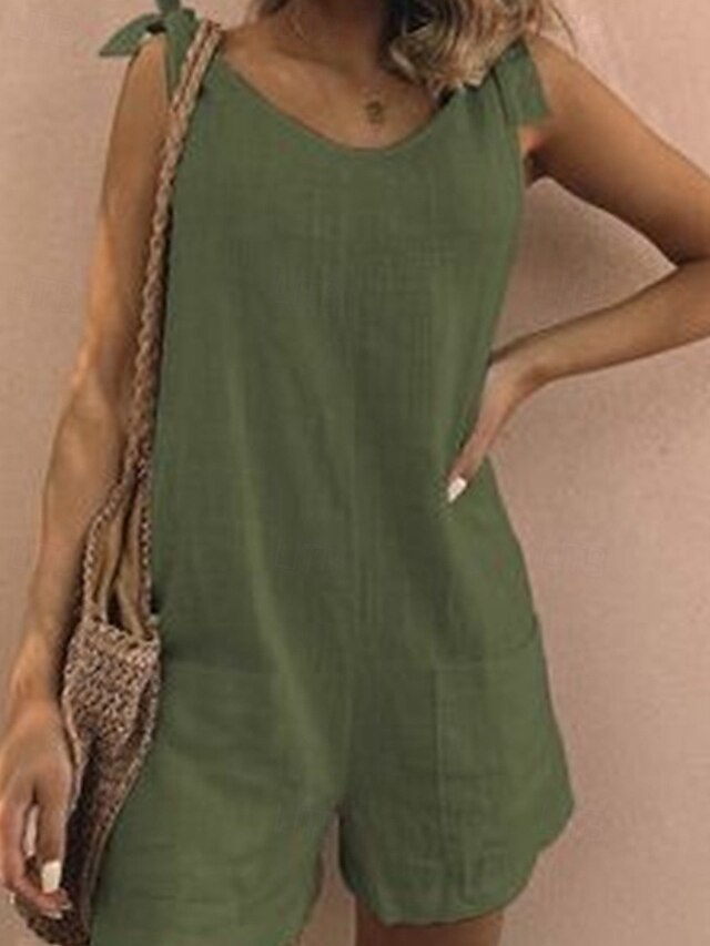 More information about Women's Normal Cotton Linen Pants Streetwear Solid Color Sleeveless V Neck Pocket Street Daily Regular Fit White Yellow Army Green Summer