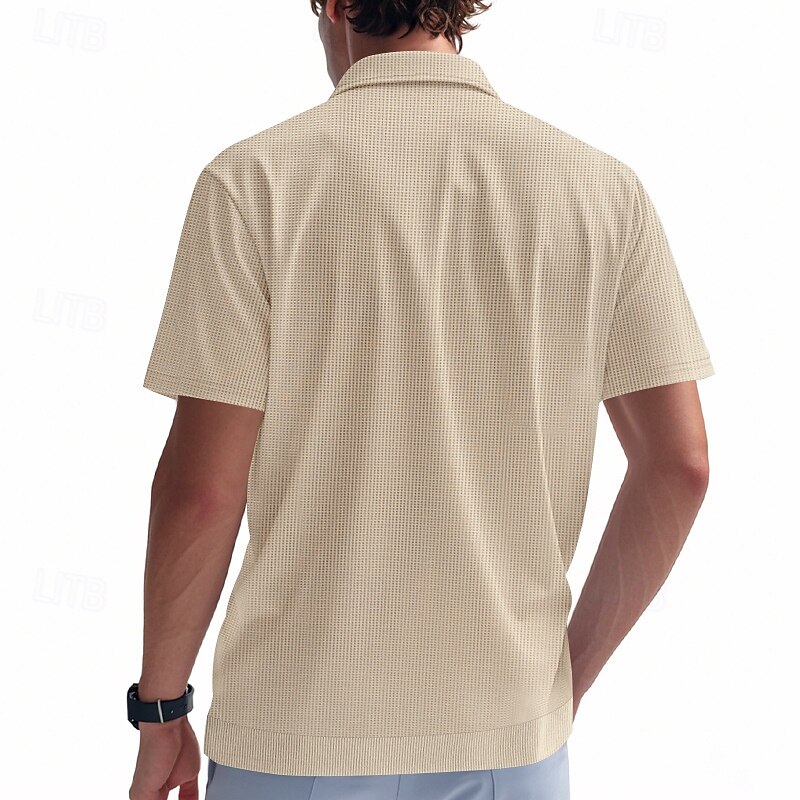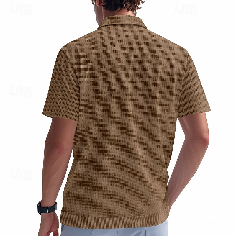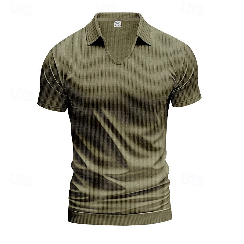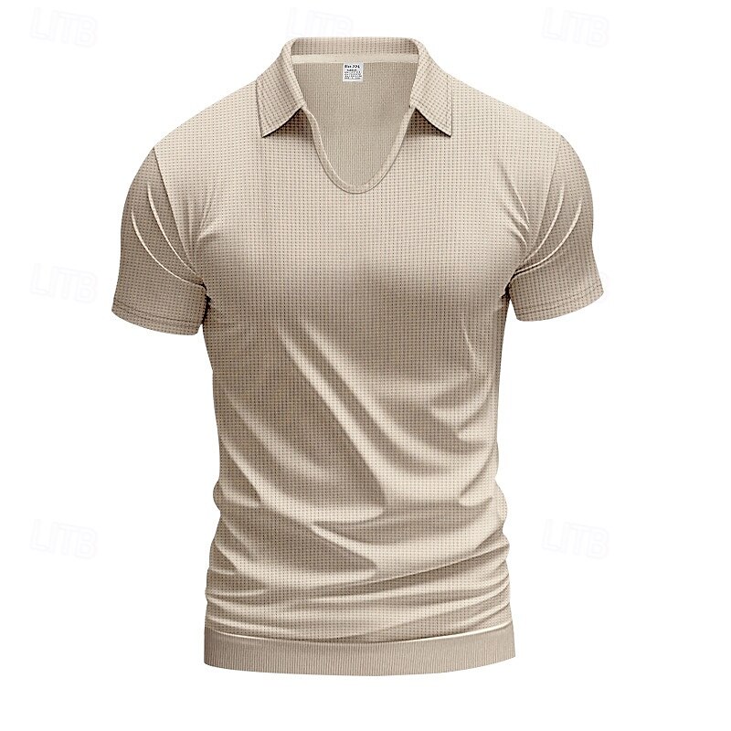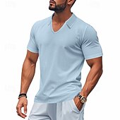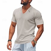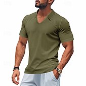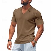 More information about Men's Golf Shirt Golf Polos Shirts Work Casual V Neck Short Sleeve Basic Modern Plain Jacquard Summer Spring Regular Fit Apricot White Brown Light Grey Army Green Light Blue Golf Shirt