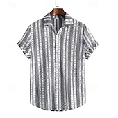 More information about Men's Shirt Summer Shirt Casual Shirt Beach Shirt Button Up Shirt Black Short Sleeve Stripes Lapel Vacation Hawaiian Clothing Apparel Polyester Fashion Casual Comfortable Pocket