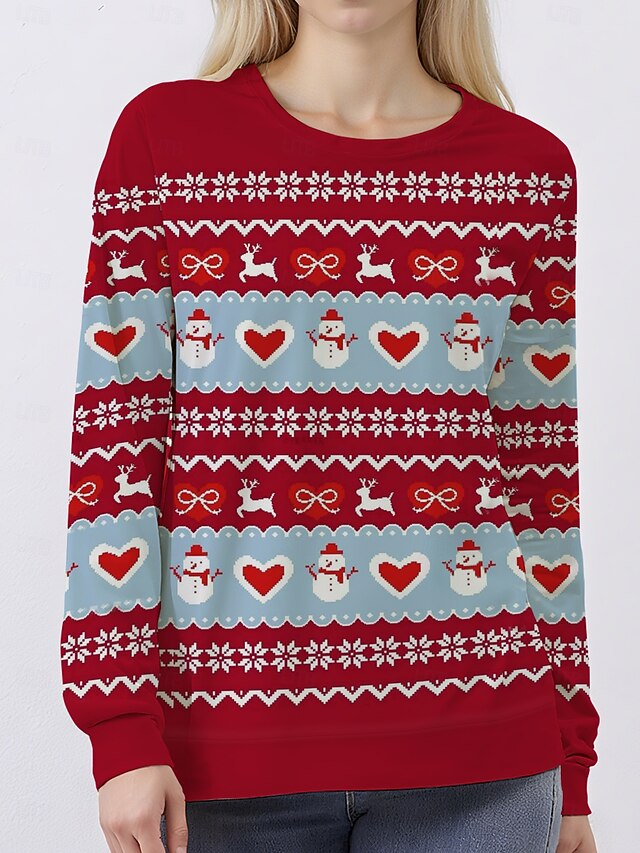 More information about Women's Pullover Sweatshirt Hoodies Graphic Snowman Christmas Classic Casual Festival Long Sleeve Crew Neck Round Neck Regular Tops Casual Holiday Print Red Fall Winter