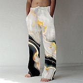 More information about Men's Marble Abstract Liquid Art Trousers Baggy Pants Casual Pants Mid Waist Casual Outdoor Vacation Daily Drawstring Elastic Waist Wide Leg Summer Spring 3D Print White