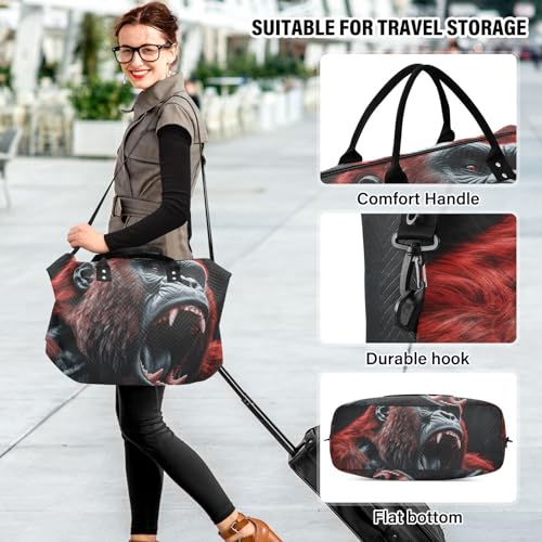 Large Travel Duffel Bag, Red Black Gorilla Sport Tote Gym Bag, Shoulder Weekender Overnight Bag for Women Men, Carry On Luggage with Toiletry Bag 5
