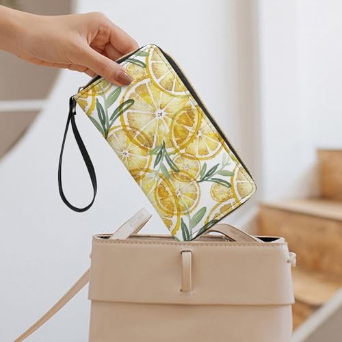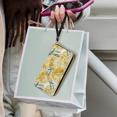 Niapessel Women's Wallets, Lemons Print Large Zip Around Leather Travel Long Purse with Wrist Strap Card Cases & Money Organizers 1