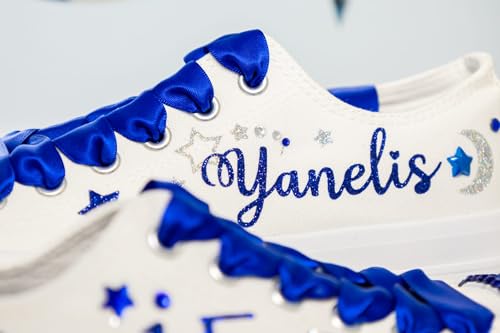 More information about Quinceanera Sneakers Royal Blue - 15 Birthday personalized Shoes with stars and moons - Zapatillas de 15 Blue Customized Shoes - Dancing 15th Party (8)