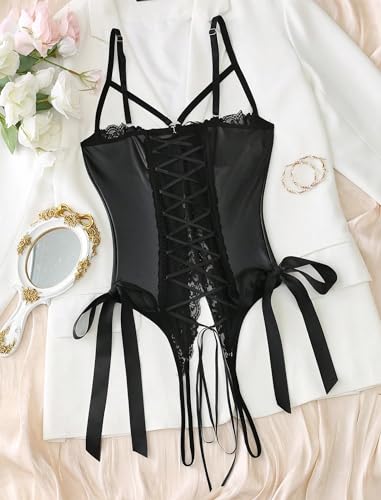 • ❤ Features: This teddy lingerie for women featuring cutout bra, push up underwire bra, lace & faux leather, side bow accents, convenient crotch, cross-back lacing, adjustable shoulder strap help you get the best fit