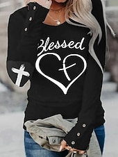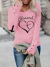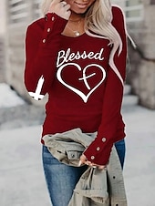 More information about Women's Valentine Funny T Shirt Fashion Heart Letter Regular Tops Long Sleeve Round Neck Print Regular Fit Valentine's Day Weekend Black White Pink Wine Spring & Fall
