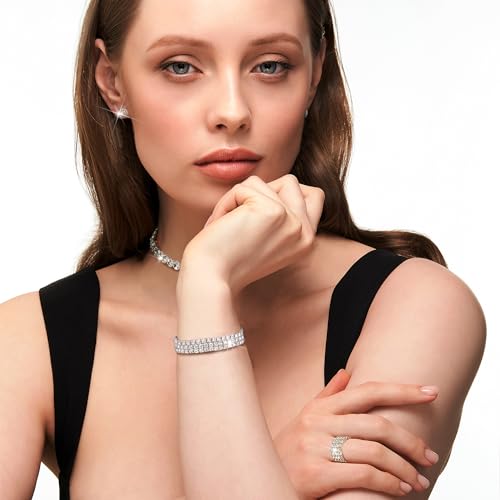 • ✨【WOMEN'S SHINY JEWELRY SET】: This shiny jewelry set includes 3 pcs multi-layered tennis rhinestone bracelets, 1 pcs of ring, 1 pcs of bling envelope purse, 1 pcs of shiny rhinestone choker necklace, 1 pair of round CZ studs, 1 pcs long layered necklace and 1 pair of dangle fringe earrings. Enough jewelry set for you to match diversified evening dresses or other formal outfits. Its shining and smooth surface never snag the gown, the gorgeous and elegant design always keep pace with fashion