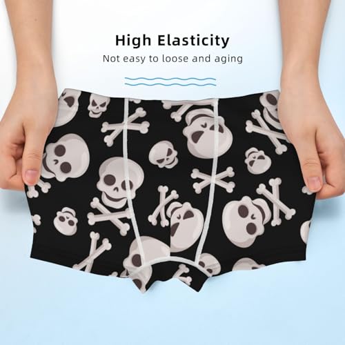 HOT ! Boys' Cotton Boxer Brief Soft Underwear-Black White Skull Bone
